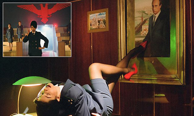 Enter Nadezdha Tolokonnikova, dressed up like a non-coke-addicted Amy Winehouse, writhing orgasmically under a picture of Putin and fellating a plastic loaf of bread while rapping about Yuri Chaika. Other feminist tropes emerge, including bare legs in stilettos and fishnet stockings. The members who are not portraying Amy Winehouse are either wearing a plague mask (??) or clad in drab Soviet-era uniforms, clunky shoes and bad make-up.