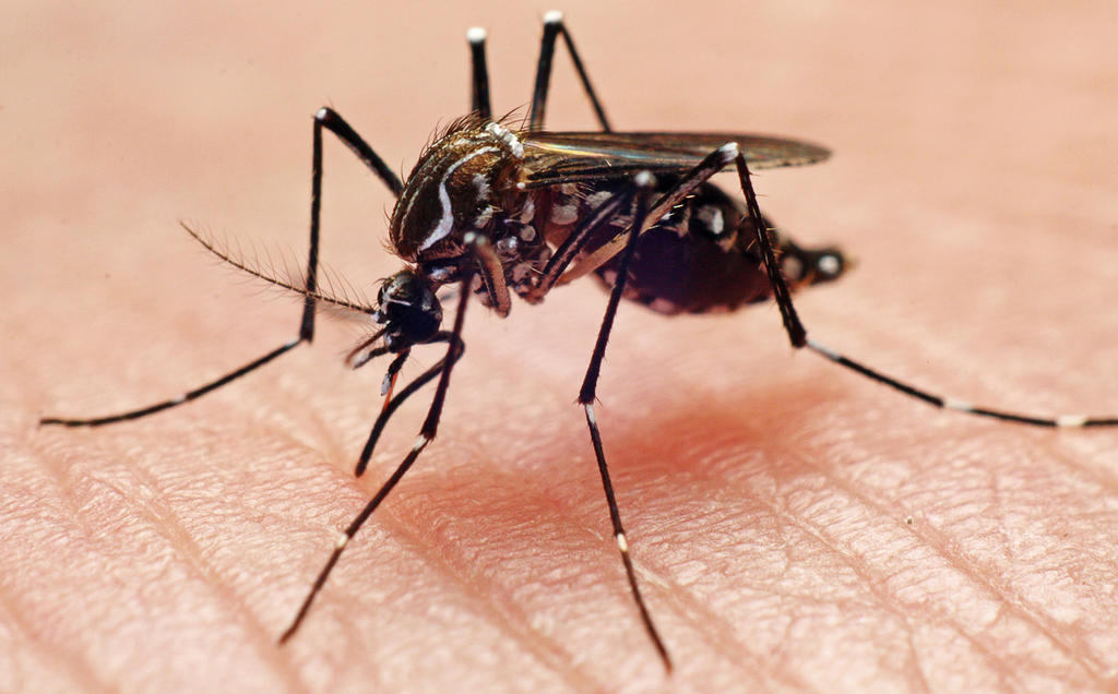 A bite from the wrong Aedes aegypti mosquito can give a person dengue, yellow fever, chikungunya, or Zika. (image: Wikimedia Commons)