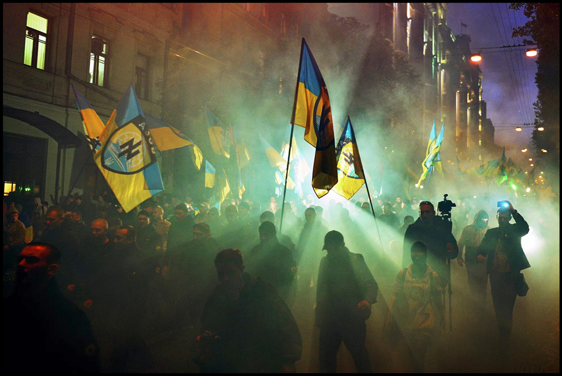 Photo of the Azov Battalion demonstrating in Kiev by AFP, slightly modified by me.