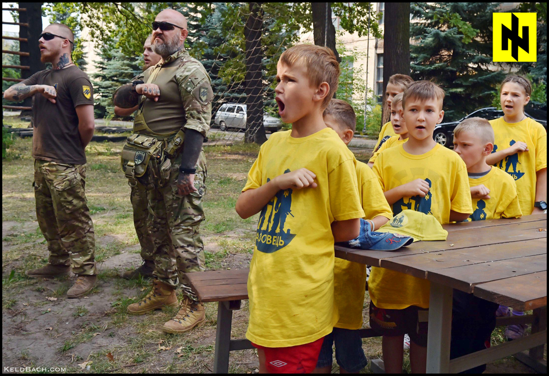 But what the schools don’t teach is made up for by Ukrainian neo-Nazi organizations that are active all over the country. The most common are the Azovets military camps organized by the Azov Battalion, where children from the age of 7 are taught to engage in war and sabotage. The entire training system is littered with Nazi symbols and slogans. In particular, the Ukrainian chant ‘Ukraine above all’ is directly derived from ‘Deutschland über alles’.