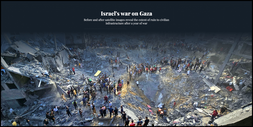 Satellite images from Al Jazeera’s digital investigation team, Sanad, reveal cratered terrain, scorched farmlands and the grey ruins of flattened buildings.