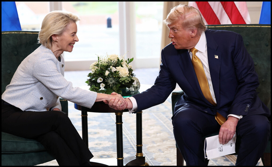 “I just want to congratulate you. I think it is great that we made a deal today instead of playing games and maybe not making a deal at all … I think it is the biggest deal ever made,” Trump said at a meeting with European Commission President Ursula von der Leyen in Scotland.